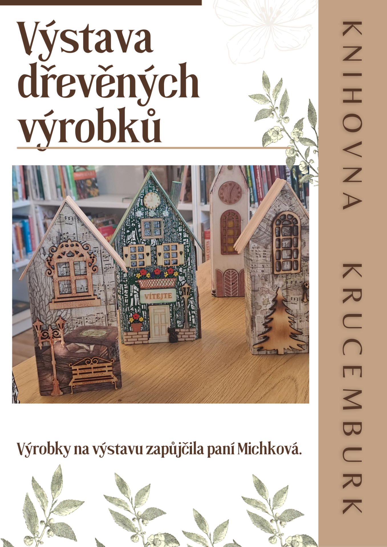 V současné době probíhá v knihovně prodejní výstava dřevěných domečků od paní Michkové.